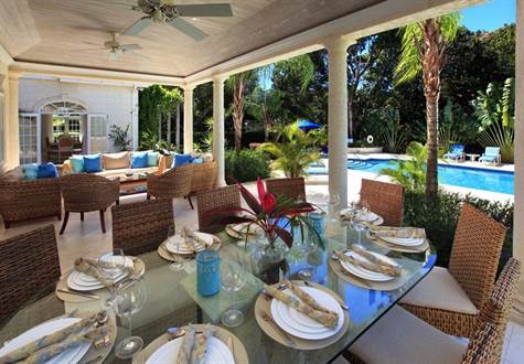 Located on the prestigious Sandy Lane Estate, this luxurious property boasts 6 bedrooms and overlooks the third fairway of the Old Nine Golf Course at Sandy Lane. It’s private ridge front location affords spectacular views of the West Coast and Caribbean Sea. Sitting on a beautiful elevated lot of approximately 2 Acres, designed by Michael Gomes and completed in 2004, its architectural style is Classical Barbadian presenting a unique marriage of two vernacular styles of architecture – the Barbadian Plantation House with its formal solid structures, wrap-around verandahs, plantation shutters and classical detailing, and the indigenous Chattel House, reflected in the use of the more whimsical timber gingerbread facia boards, turned timber posts and decorative brackets. Ingeniously designed to afford maximum privacy, the layout of the villa is based on Balinese design principals, with a collection of connected “pavilions” and intertwined garden courtyards set around a swimming pool and garden water features. The planning and positioning of the various “pavilions” maximises views to the Caribbean Sea, the golf course and surrounding gardens while providing natural cross ventilation through the entire house. The main house consists of five “pavilions.” The first of these is the bedroom building which features four beautifully designed rooms including the phenomenal master suite which occupies the entire upper level. The other pavilions are the family room, the garden entrance foyer, the living room & main verandah building, the dining room building and the breakfast and service building. Designed to look like a “ruin”, the dining pavilion is a unique space, with covered breezeways connecting it to the adjacent service pavilion and main verandah/living room pavilion. Constructed in reclaimed old coral stone from a demolished sugar factory, its oversized space with rugged window and doorway openings, natural coral stone walls with broken away areas that allows the garden in, and the high exposed timber roof structure with crystal chandeliers all work together to create a magical setting for lunch or dinner. In addition to the main house, there are two other pavilions, the pool pavilion and a two bedroom guest cottage that are set around the central swimming pool with terraced gardens cascading down to the golf course at the lower level. For the golf lovers, this property is home to a custom designed Ian Woosnam putting and chipping practice green. The property is completely enclosed and has electronically operated main gates. There is a triple car garage and a cabana at the Sandy Lane Property Owners Beach Facility.